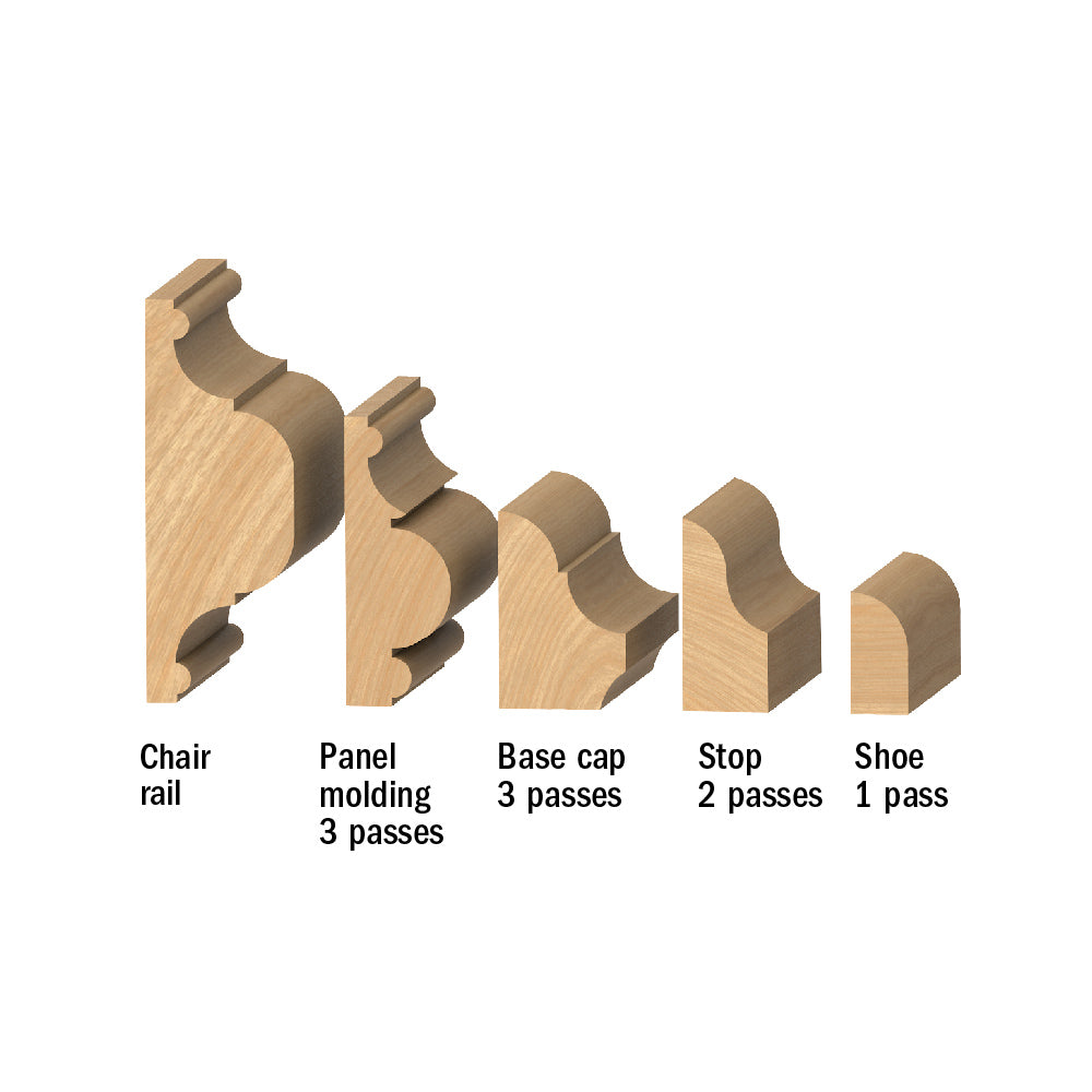 Dacă selecția standard de scule și mulaje găsite în magazinele de cherestea de astăzi nu se potrivește gusturilor dvs., nu căutați mai departe decât sistemul de profilare CMT. Cu aceste instrumente, puteți crea zeci de profile complexe combinând doi sau mai mulți pași. Evitați frezările uzuale și creați propria combinație de profile. SFATURI DE SIGURANȚĂ: Folosiți aceste piese cu o riglă de ghidare.Frezați treptat profilele până la forma lor finală. parametri tehnici -Otel super rezistent. -2 tăișuri de precizie HW (Z2).