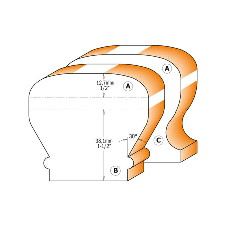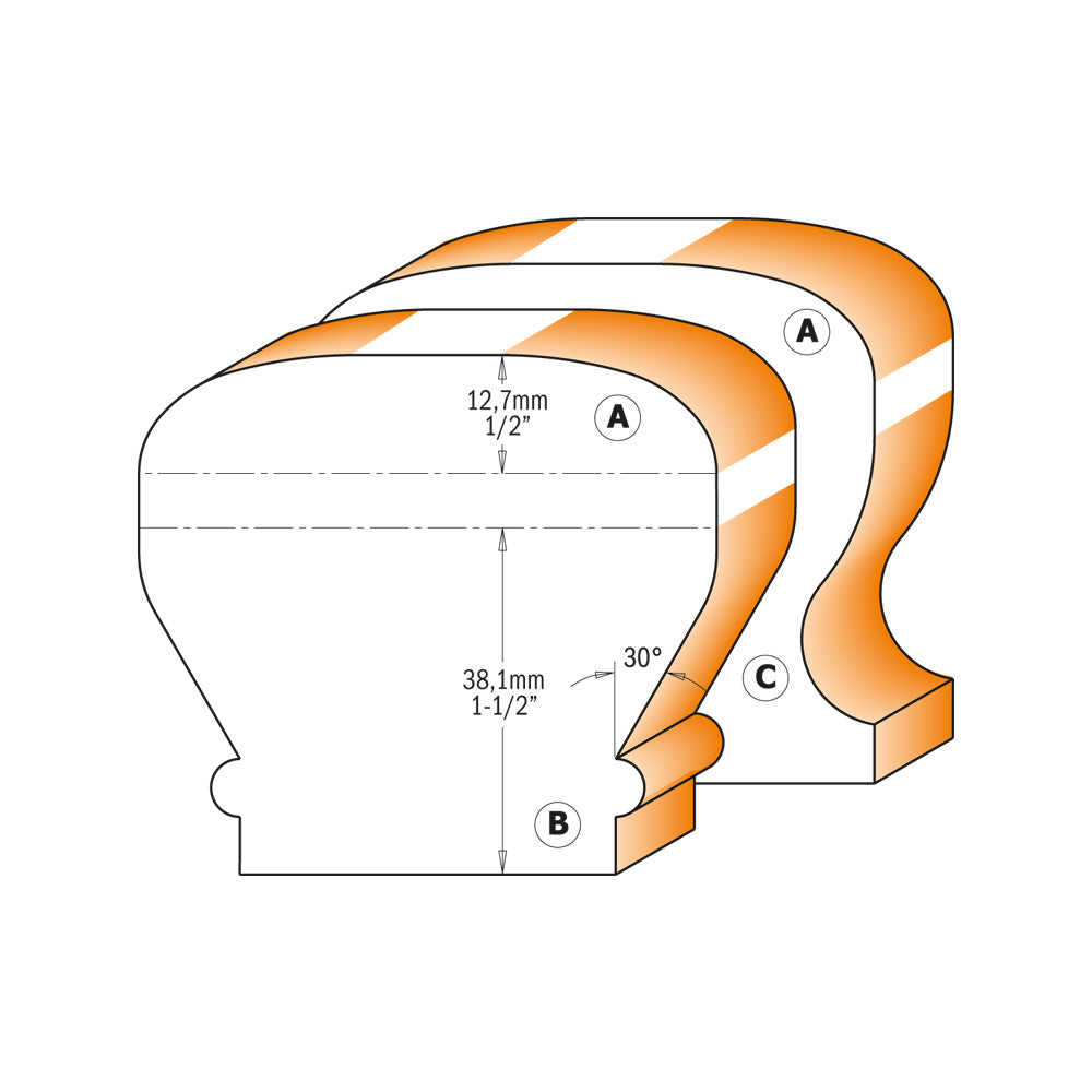 CMT Freză pentru mână curentă profil 'A-B-C' , S=12-12,7