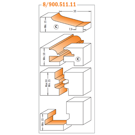 Setul 8/900.509.11 de la CMT Orange Tools a fost conceput pentru a satisface nevoile fiecărui producător de mobilier, cum ar fi ușile și sertarele. Setul include cinci unelte, printre care o freză pentru îmbinări paralele, o freză pentru sertare și, la alegerea dumneavoastră, o freză pentru uși cu profil orizontal și un set de freze pentru îmbinări mascul-femelă.